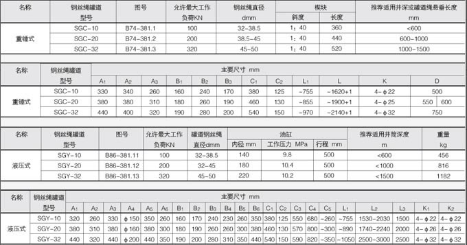 罐道繩液壓拉緊裝置技術參數